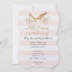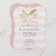 "Elégante Princesse Carriage Gold Baby Girl Shower Invitation." Baby shower doux et girly pour votre future princesse ! Une calèche royale à parties scintillant d'or et un texte typographique qui dit : "Une petite princesse est en route." Les larges rayures rose pastel et blanc confèrent au design une touche moderne. Au verso, "Il était une fois" avec votre message. Conçu par Audrey Jeanne Roberts, artiste et designer de renommée internationale, copyright.
