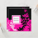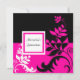 Elégante invitation Quinceanera, vigne florale noire et rose chaud.