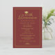 Envoyez à vos camarades de classe de la 40e classe notre élégante invitation de carte à plat avec un arrière - plan de marron rouge et une typographie de script en faux or accentuée d'une casquette de graduation en or. Personnalisez avec tous vos détails de réunion. Conçu par ©Susan Coffey.