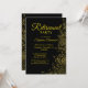 Donnez-moi 2 descriptions pour une invitation à la retraite. Le thème de la fête est le féminin élégant. Le design montre les mots Retraite Party dans un script élégant et une police serif simple pour les détails de la partie. L'arrière - plan est noir. Graphique d'une bordure rose dorée sur un côté de la carte. Dans l'espace arrière pour du texte supplémentaire. Merci pour votre intérêt, si vous aimez le design s'il vous plaît donnez-lui un genre. Économisez du papier, du temps et de l'argent. Commandez un téléchargement numérique à partager via les médias sociaux.