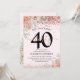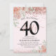 Invitation Elégante rose florale & Parties scintillant 40e fê