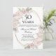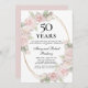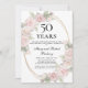 Élégant modèle d'invitation d'anniversaire de mariage de 50 ans avec un cadre doré et deux arrangements de roses roses. Tout le texte est modifiable.