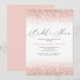 Belle invitation de douche de mariée rose, avec un effet de paillettes roses, une belle police de caractères script sur un fond blanc classique. La carte propose également un modèle d'invitation de mariage moderne facile à modifier. Les styles de police, les tailles et la couleur de fond peuvent être modifiés en cliquant sur le lien de personnalisation supplémentaire après la personnalisation.