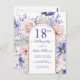 Cette invitation de fête d'anniversaire de 18 ans au style floral élégant présente des fleurs roses et violettes accentuées d'une bordure de paillettes dorées fausses pour personnaliser les détails de votre fête dans un script moderne. Le verso de la carte postale comporte un message que vous pouvez personnaliser. Conçu par Susan Coffey.