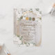 Quinceañera invitation en élégante roses blanches, pivoines, et hydrangea avec des accents d'or et de la bannière de lapin picado, casquette charro, et robe. Consultez la boutique pour cette invitation avec des filles dans différentes couleurs de cheveux et de teintes de peau et plus de variations.