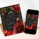 Invitation Elégante Roses rouges or Royal Quinceañera