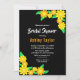 Cette élégante invitation à la douche nuptiale de tournesol est parfaite pour une douche nuptiale fleurie moderne. Le design simple présente des tournesols jaunes et oranges fleuris avec une élégante typographie blanche sur un arrière - plan noir audacieux.