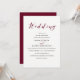 Ce magnifique faire-part de mariage présente une calligraphie couleur marsala/bordeaux ainsi qu'un texte noir moderne, sur un élégant arrière - plan blanc. Parfait pour un mariage traditionnel et formel avec une touche moderne !