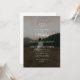 Faire-part de mariage photo moderne et complet avec une élégante typographie superposée sur un paysage de montagne romantique. Le design épuré allie décor naturel et détails raffinés, ce qui en fait un choix parfait pour les couples qui planifient un mariage de montagne ou une fête en plein air avec un style intemporel.