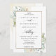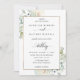 Elégante invitation de mariage avec d'exquis détails de verdure aquarelle et des taches délicates d'aquarelle dans un mélange doux de tons vert, bleu, crème, jaune tan et terre cuite. Détails de calligraphie manuscrite moderne. Un dossier unique avec des taches délicates d'aquarelle qui descendent en cascade. Une partie de notre collection "Elegant Greenery Eucalyptus Mariage and Events" avec une variété de produits de coordination disponibles.