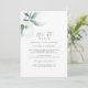 Cette carte d'invitation de renouvellement de vœux Nous le faisons à nouveau avec une élégante verdure est parfaite pour une cérémonie simple de renouvellement de vœux et une célébration. Le design élégant moderne présente un arrangement botanique naturel d'eucalyptus, de feuilles et de plantes avec un accent subtil de lavis d'aquarelle vert menthe.