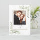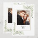 Cet élégant numéro de table feuille d'eucalyptus vert dispose de feuilles d'aquarelle délicats avec votre photo spéciale encadrée par une bordure d'or. Conçu par Thisisnotme©