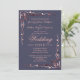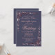 Invitation Élégante vigne dorée Rose sur bleu marine