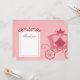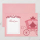 Cette super mignonne fille merci carte à plat a un thème princesse. Dans l'arrière - plan, il y a un arrière - plan à rayures roses avec un chariot rose sur le côté droit. Sur le côté gauche, il y a un espace blanc pour que vous écrivez à la main dans votre message de remerciement à la maison, ou customisez-le avec votre propre texte à imprimer. © 2012 Jessica Weible/JW Illustrations