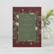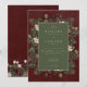 Nous vous présentons notre invitation de mariage d'hiver enchanteresse, où l'élégance intemporelle rencontre la beauté de la saison. Le fond bordeaux riche, subtilement patiné avec des accents blancs, donne un ton captivant à votre jour spécial. Dans la zone de texte vert sauge foncé, les détails de votre mariage se démarquent, entourés d'un cadre crème délicat qui ajoute une touche de raffinement. Embrassez l'esprit de l'hiver avec un cadre saisissant de verdure luxuriante, orné de houx aux baies rouges riches, de gui aux délicates baies blanches et de l'attrait intemporel du pin vert. Créé par Simply Farmhouse Press.