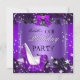 Invitation pour toutes occasions. Fête d'anniversaire, chaussures à talons hauts noires avec dentelle violette et paillettes. Invitation pour toutes les fêtes, enterrement de vie de jeune fille, soirée entre filles, fête de poulettes. Personnalisez avec vos propres détails et âge. Modèle pour fête d'anniversaire, 16 ans, Quinceanera 15 ans, 18 ans, 20 ans, 21 ans, 30 ans, 40 ans, 50 ans, 60 ans, 70 ans, 80 ans, 90 ans, 100 ans, produit fabuleux pour femmes adultes, adolescentes. Zizzago a créé ce design. NOTEZ S'IL VOUS PLAÎT que toutes les images sont plates ! Elles ne contiennent pas de vraies paillettes, diamants, bijoux ou vrais nœuds !!