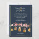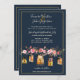Ce design mariage floral romantique et chic présente des lanternes et des lampes à cordes rustiques et des couleurs d'aquarelle, du corail élégant, de l'or rose, des pivoines roses et d'autres fleurs sur un arrière - plan bleu marine avec des cadres d'or. Facile à personnaliser avec vos propres informations de mariage, et la couleur arrière - plan est également personnalisable. Ces cartes sont parfaites pour le rustique mariage de grange romantique, mariage de ferme, ou tout lieu rustique et romantique. Conception de T.K. Goforth. Des articles mariages de coordination sont disponibles dans ma collection Elegant Peonies & Rustic Lanterns Navy & Coral Floral dans ma boutique Zazzle :
