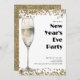 Une invitation à la fête de la Saint-Sylvestre blanche avec un design imprimé de parties scintillant d'or, flûte de champagne et les détails de votre famille que vous pouvez customiser pour faire votre propre. Modifiez à l'aide de l'éditeur de texte pour ajouter vos propres détails d'événement. Il s'agit d'un invitation élégant pour une fête du Nouvel An ou une célébration pour se réunir avec vos amis.