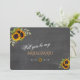 Design de carte rustique et romantique avec des bouquets de tournesols aquarelle, des flèches avec des cœurs et des tournesols comme séparateur, le tout sur un fond de photo de véritable tableau noir. Utilisez l'outil de personnalisation pour ajouter vos informations, modifiez DEMOISELLE D'HONNEUR AVEC FLEUR / MATRON D'HONNEUR... pour l'adapter à vos besoins, changez la couleur de la police. Les articles assortis se trouvent dans ma collection Rustique Sunflowers Chalkboard. Contactez-moi si vous avez besoin d'aide.
