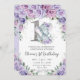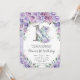 Invitation Eléphant adorable à fleurs mauve 1er anniversaire