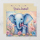 Invitation Eléphant Bébé mignon dans un jardin pastel