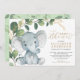 Invitation Eléphant Neutre Vert doux Baby shower Or