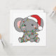 L'éléphant à Noël avec des lumières de fée. Des animaux drôles avec des cadeaux et de la neige pour les fêtes. Un doux salut de Noël. Les éléphants sont des animaux mignons et parfaits pour Noël.