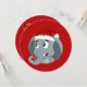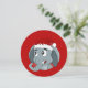 Fêtes de Noël personnalisées design invitation avec tête de dessin animé d'un éléphant avec Casquette du Père Noël sur arrière - plan rouge ; dessin de saison illustré pour enfants par Maxi Harmony ; avec modèle texte personnalisable