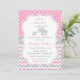 Invitation Baby shower rose et gris éléphant. L'arrière - plan est pois rose et chevron rose et gris. Le texte peut être modifié pour répondre à vos propres besoins OEuvre artistique de Mels Brushes