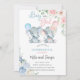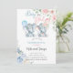Invitation Elephants gender reveal invite, pink blue flowers.