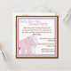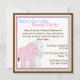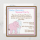 Le genre de bébé doux révèle les invitations faites en forme de carré, avec un cadre rose, bleu et marron autour d'une zone de texte blanche. Des graphismes adorables d'un point de polka rose et d'un éléphant rayé bleu tenant des troncs, décorent le coin inférieur gauche de l'invitation. Le dos de l'invitation a les mêmes éléphants mignons qui couvrent le côté arrière, avec un texte marron lisant, Est-ce un garçon ou Est-ce une fille? Le texte en bleu, rose et marron est prêt à être personnalisé pour votre grande soirée révélatrice.