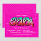 Une invitation graffiti rose lumineux en désordre, parfaite pour une fille ou un garçon de onze ans.