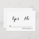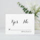 Un ruban magnifiquement ludique accentue cette réponse RSVP, avec la phrase mignonne, "Elle a dit Oui, j'espère que vous aussi". De l'autre côté de la réponse RSVP, l'invité a le choix de encercler "Oui" ou "Non", renforçant encore le caractère ludique de cette réponse RSVP noir et blanc. Il est présenté sur le papier de base ; cependant, je recommande le poids et la texture luxueuse du papier lin.