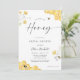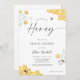 Célébrez la future mariée avec notre délicieuse invitation à la douche nuptiale "She Found Her Honey". Ce design charmant capte l'essence de l'amour et de la douceur, ce qui en fait l'introduction parfaite à une célébration joyeuse en l'honneur de ses noces à venir. L'invitation est ornée de peignes d'aquarelle magnifiquement ouvragées, créant un cadre enchanteur qui symbolise le doux voyage à venir. Les teintes jaunes douces ajoutent chaleur et élégance, donnant un ton gai à l'événement. Des illustrations ludiques d'abeilles bourdonnent autour de l'invitation, ajoutant une touche fantaisiste qui capture l'excitation et la joie de l'occasion. Ces adorables abeilles sont un clin d'oeil à la douce histoire d'amour de la mariée, rendant l'invitation à la fois personnelle et mémorable. Le design est agrémenté de fleurs sauvages jaunes délicats, soigneusement arrangés pour rehausser la beauté naturelle de l'invitation. Ces fleurs symbolisent de nouveaux débuts et le bonheur, complétant parfaitement le thème de la nid d'abeille.L'invitation comporte une police de script moderne qui ajoute une touche personnelle et intime. Cette élégante typographie assure que les détails de la douche nuptiale sont présentés avec clarté et style, invitant les invités à se joindre à la célébration avec chaleur et charme.Invitation vos proches à partager l'excitation et la douceur du voyage de la mariée à venir avec notre Invitation "She Found Her Honey" Douche nuptiale. C'est plus qu'une simple invitation ; c'est une belle expression d'amour et d'anticipation, donnant le ton parfait pour une journée remplie de joie, de rire et de souvenirs inoubliables.