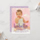 Elle a un an ! Célébrez l'événement spécial avec ces invitations de première année simplement élégantes qui présentent une photo de votre petite fille avec un texte superposé violet moderne. Le nom du bébé et l'année de naissance sont mis en évidence dans un script manuscrit gras, ainsi que tous les détails importants de la fête. Un motif de points blancs sur un fond violet lavande (peut être personnalisé) habille l'arrière de la carte.