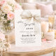Arrière - plan beige douce, crème, décorée d'un arc. Personnalisez et ajoutez un nom et des détails du parti. Texte : Elle attache le noeud.