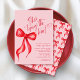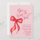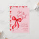 Elle est en train de nouer l'invitation à la douche nuptiale Knot Pink Red Bow. Une élégance simple. FRONT : Dispose d'une jolie aquarelle rouge arc et manuscrite script de calligraphie dans une combinaison de couleur rouge et rose tendance. DERRIÈRE : Un motif à arc tout-en-un. ©Kimbellished, LLC