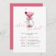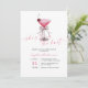 Calligraphie élégante rose chaud "elle est en train de nouer" invitation à la douche nuptiale avec design de cocktail d'arc d'aquarelle.