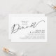 Il s'agit de la carte d'invitation à la soirée mariage elopement, avec un design de script minimaliste romantique et moderne (heureusement après le dîner), sur le thème noir et blanc. Merci de modifier avec vos détails d'invitation de la fête de l'elopement mariage.
