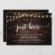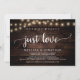 Belle rien de fantaisie juste l'amour fête, Mariage Elopement Faire-part / carte d'invitation, dans rustique ferme Bois, String Lights design. C'est parfait pour votre réception de mariage et fête post-mariage. Ajoutez vos détails dans la police correspondante / lettrage. #TeeshaDerrick