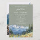 This elegant 'nothing fancy just love' watercolor mountain floral wedding reception invitation can be personalized with your information in chic typography on a sage green background and a special photo on the reverse. Designed by Thisisnotme©