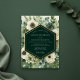 This design features an opulent display of emerald green foliage interwoven with creamy white blossoms. The artwork evokes a sense of lush, natural beauty and romantic sophistication. Delicate petals and abundant greenery create a rich, botanical feel.