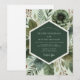 An enchanting botanical design features a rich palette of deep greens and earthy tones. Lush foliage and a singular, textured bloom create an atmosphere of natural elegance. This artistic arrangement evokes a serene and romantic woodland feel, perfect for a sophisticated celebration.