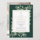 Une élégante photo personnalisée de célébration de la vie invitation de souvenir avec aquarelle feuillage botanique de verdure sur un arrière - plan émeraude. Conçu par Thisisnotme©