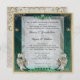 Des émeraudes en forme de diamant, un panneau de dentelle aux perles chatoyantes, des orchidées blanches aux pierres de diamant contre un arrière - plan émeraude.