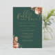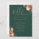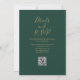 Cette élégante invitation de mariage peut être personnalisée avec vos informations en typographie or chic avec vos détails de site Web mariage et votre code QR au verso sur un arrière - plan vert émeraude. Conçu par Thisisnotme©