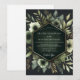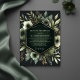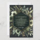 This design features a moody and ethereal arrangement of muted green and cream blossoms and foliage. Deep, dark tones create a dramatic backdrop for the delicate floral elements, evoking a sense of enchanted romance. The palette leans towards deep greens and soft whites.