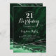 Émeraude vert et argent agate 21e anniversaire invitation de fête. Design élégant et moderne avec aquarelle agate marbre arrière - plan, faux parties scintillant argent et typographie script. Carte invitation branchée parfaite pour une célébration anniversaire féminine élégante. Invitations Zazzle imprimées ou téléchargement instantané modèle imprimable numérique.