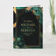 Invitation Emerald Green Gold Floral Marble QR Code Wedding