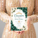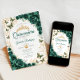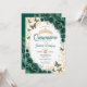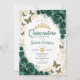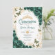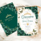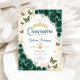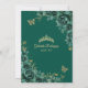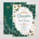 Emerald green, gold and white Quinceanera celebration invitation. Features, script font, gold butterflies, watercolor roses and tiara. Perfect for an elegant princess style glam celebration. Personalize with your own details. Printed Zazzle invitations or instant download digital printable template.